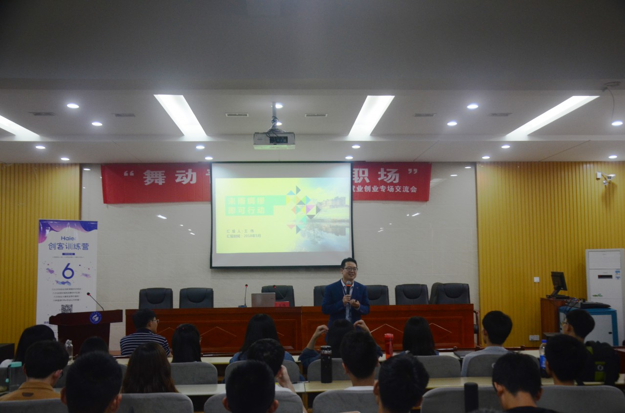 本次交流会的主题是“未雨绸缪,即刻行动”,王伟告诫同学们要从现在起考虑就业问题。王伟通过自己的亲身经历,生动形象地从简历制作、职场礼仪等方面进行指导,很好地分析了当前大学生的就业形势、就业方向等。随后他从面试技巧方面给了同学们一些建议和方法。交流会的最后,王伟向同学们介绍了海尔的创客训练营,呼吁同学们积极参与,以此来提升个人的就业创业能力。
