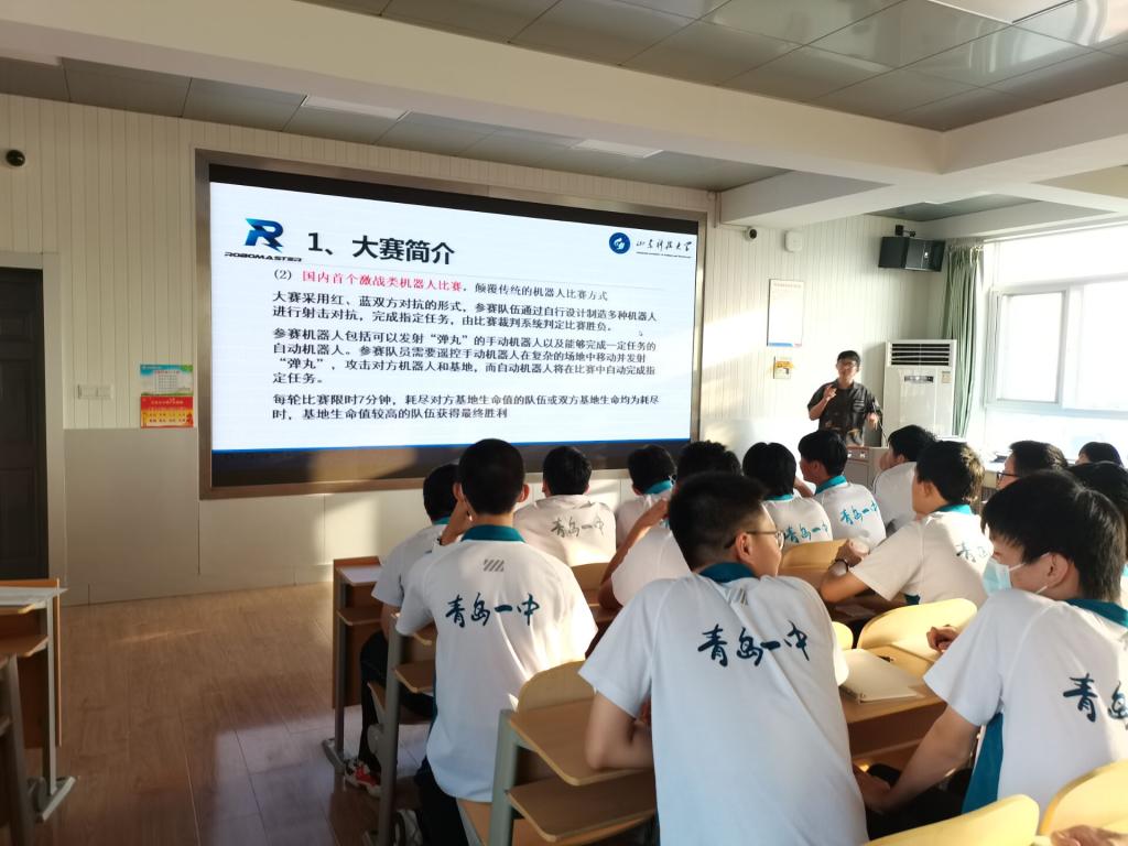 近日,山东科技大学必赢776netSmartRobot机器人战队队长王雷带领电控组硬件方向组长李超凡、骨干成员孙振琪,电控组软件方向组长贾科研等人来到青岛一中创新社团,为青岛一中莘莘学子带来了别开生面的科创公开课。