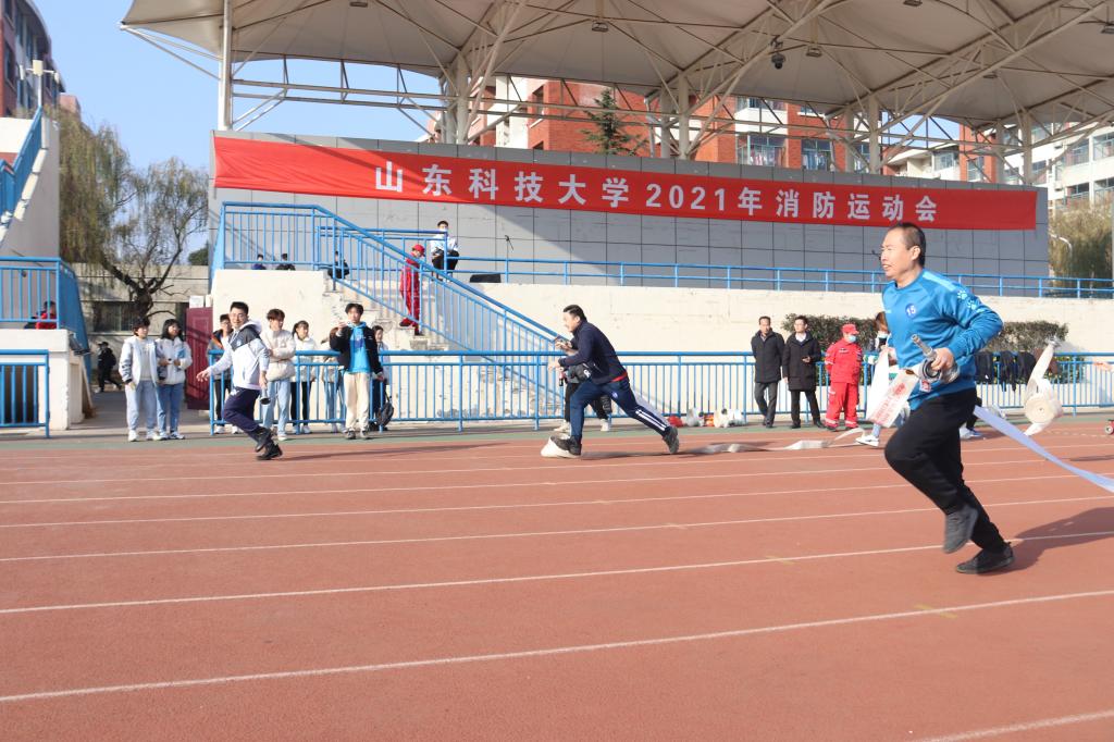 11月27日上午,山东科技大学首届消防运动会在风雨操场举办。经过激烈比拼,我院教工代表队总用时1分28秒77,总成绩为22支教工代表队中第一名。分别获得团体一等奖,逃生竞速接力、灭火器选择接力折返跑、灭火器接力灭火三项一等奖,消防水带灭火二等奖的佳绩。