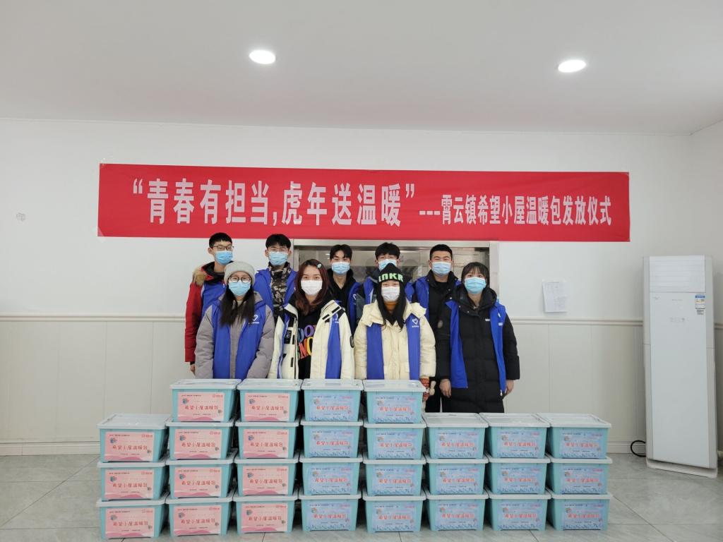 新年前夕,为深切关怀青少年健康成长,帮助困难群众温暖安全过冬,周正的队伍协助举办了“青春有担当,虎年送温暖”青年志愿者服务活动暨“希望小屋”温暖包发放仪式。镇领导和以周正为代表的“青鸟计划”大学生志愿者们一道为全镇28名希望小屋儿童发放温暖包裹。