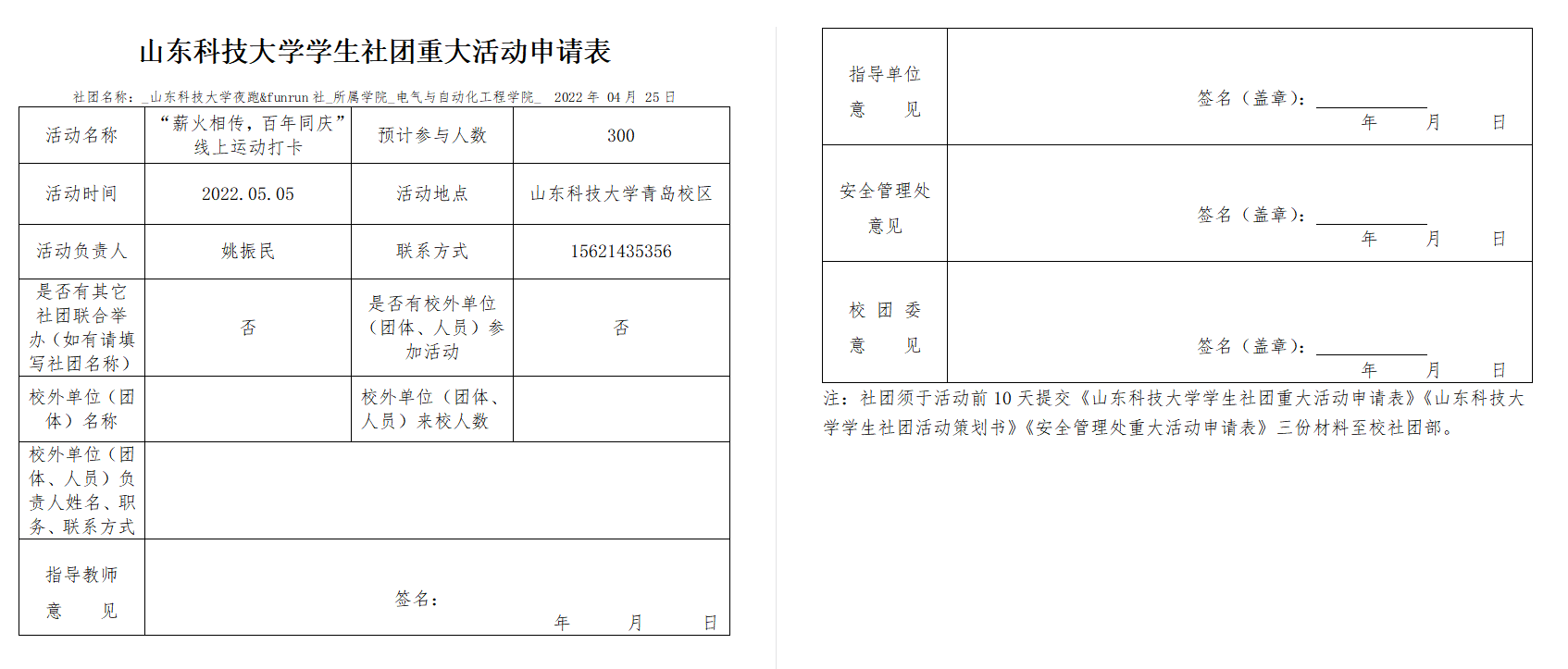 百年征程,波澜壮阔;百年初心,历久弥坚。必赢776net夜跑&funrun社于2022年5月5日举办了“薪火相传,百年同庆”。此次校级活动,参与活动的每位成员通过奔跑一公里并拍摄祝福视屏的方式,庆祝中国共产主义青年团百年华诞,让奋斗精神、红色基因、革命薪火代代传承。本次活动主要分为两部分,在第一个部分中,每位成员都需要用运动软件记录至少一公里的跑步记录,并将截图上传至群文件。在第二个部分中,每位成员都需要拍摄视屏,并在视频中表达自己对共青团的祝福。大家克服身体不适,克服天气影响,为共青团百年华诞而庆祝。五四的火炬已经传承到我们这一代的手中,生命不息,奋斗不止,是我们在团旗下默许于心中的誓言!