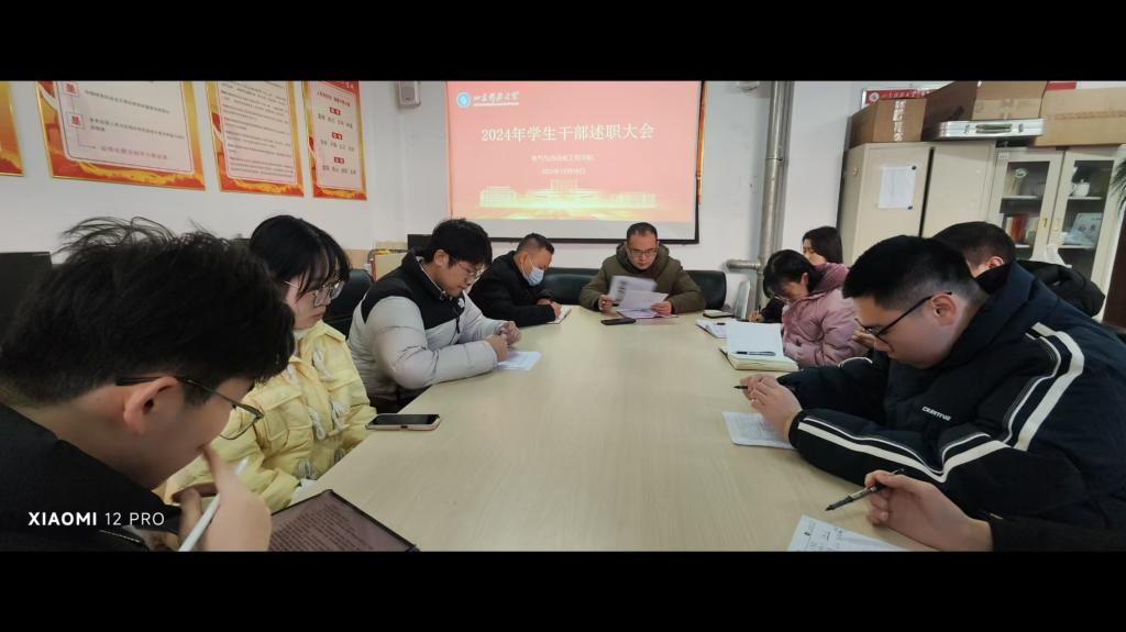 学生会主席童永恒就权益问题,总结了在维护学生权益方面所采取的各项措施及取得的成效;电赞服务团负责人郭真伟重点汇报了志愿服务工作的开展情况,包括组织的各类校内外志愿活动,展现了同学们积极奉献的精神风貌,增强了团队的社会责任感;体育部负责人艾康总结了过去一年的体育赛事组织工作,从新生篮球赛到学院运动会,各项活动丰富了同学们的课余生活,营造了良好的体育氛围;运动协会负责人孙鑫超总结了各球队的训练经验和成果,提高了学生们的身体素质;科创部负责人刘航恺介绍了在科技创新赛事组织、科研项目辅助等方面的工作,激发了同学们的创新思维和实践能力;新闻中心负责人叶宇宣展示了在宣传工作中的亮点,通过多种渠道对学院活动、师生风采等进行及时、准确的报道,提升了学院的知名度和影响力;心建联负责人綦靖昊汇报了心理健康教育活动的开展,如心理健康讲座、心理拓展训练等,关注同学们的心理健康,为同学们的成长保驾护航。