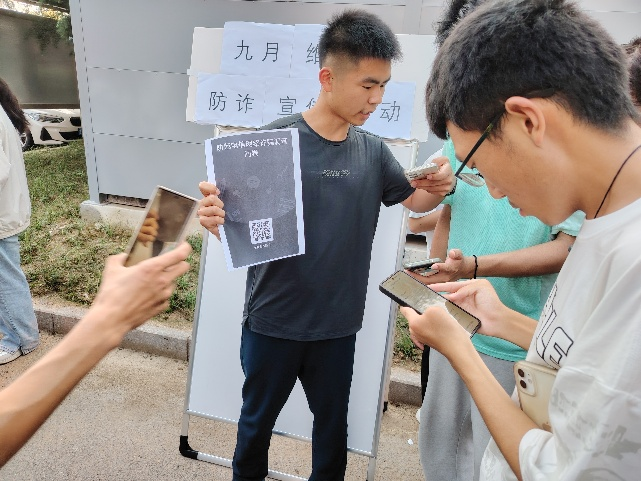 活动现场,工作人员提前设立问卷发放点,积极向过往同学说明调查目的与填写要求。同学们踊跃参与,认真阅读问卷题目,结合自身认知与生活经验,如实填写了涉及防诈骗知识、应对技巧以及常见诈骗场景判断等内容,有效保障了调查数据的真实性和参考价值。