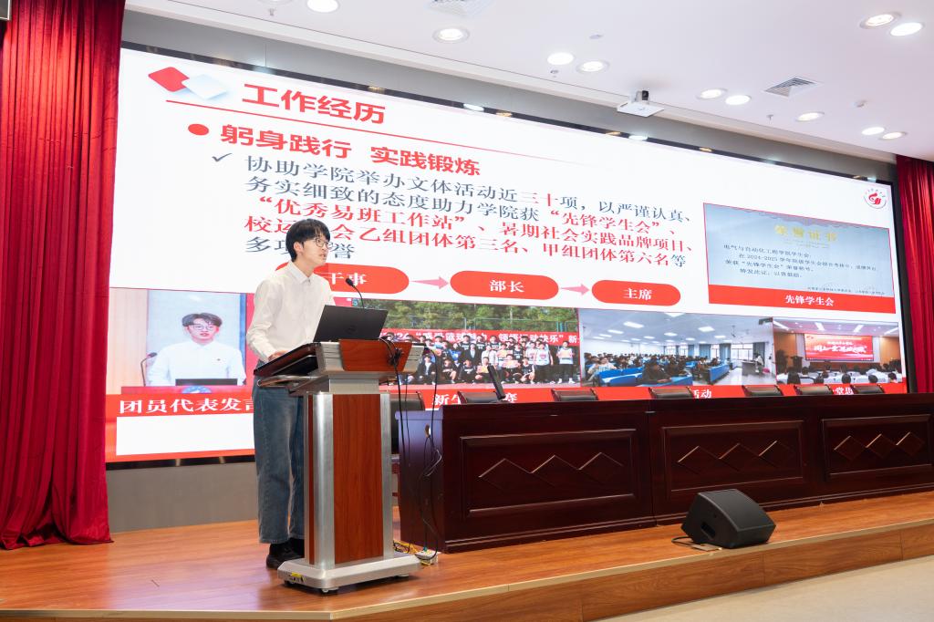 为强化团支部委员责任意识,提升学生干部工作能力,12月12日,必赢776net举办团支部委员培训,学院学生会执行主席、电气专业2023级5班班长冯俊泽以“学生干部的使命担当”为主题,带来了一场干货满满、生动鲜活的分享,全院各团支部委员参与培训。