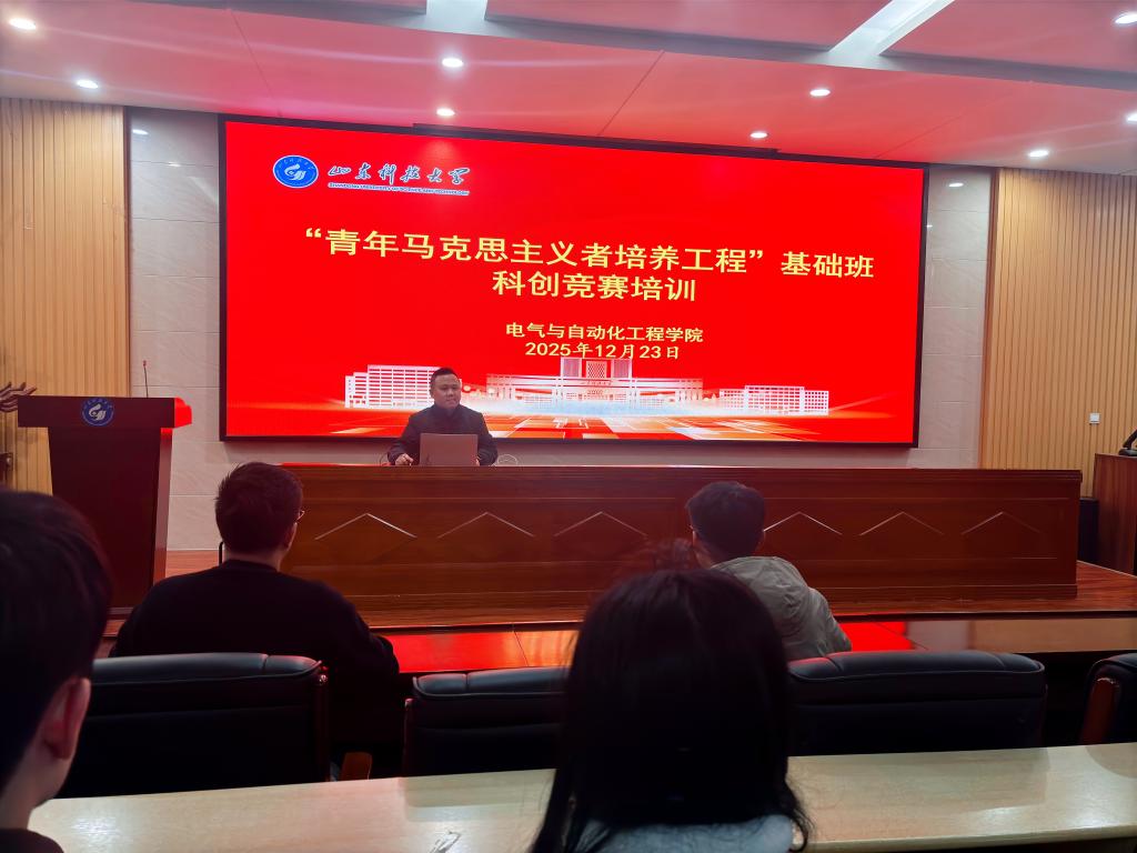 为提升青年学生干部的创新素养与实干能力,12月23日,必赢776net2025-2026学年“青马工程”基础班举办科创竞赛赋能讲座,学院科创指导老师孟庆祥担任主讲,全体青马学员、学院团支书参加学习。