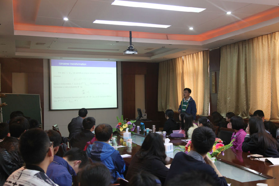2016年4月27日上午,应“泰山学者”张维海教授的邀请,山东大学的王光臣教授和中国科学院系统所的倪元华博士后为学院师生,分别作了题为《Partially Observable Optimal Control Problem of Forward-Backward Stochastic Control Systems》和《Mean-Field Stochastic Linear-Quadratic Optimal Control》的学术报告。本次报告会在必赢776net会议室举行,卢晓副院长主持了报告会。两位专家分别介绍了他们在随机控制方面取得的成果和新观点,对今后发展的新趋势和面临的挑战等科学问题进行深入交流。两位专家耐心解答了老师和学生的疑问,整个报告会气氛活跃。此次学术报告促进了我院的学术合作与交流,激发了学生的学习热情和积极性。