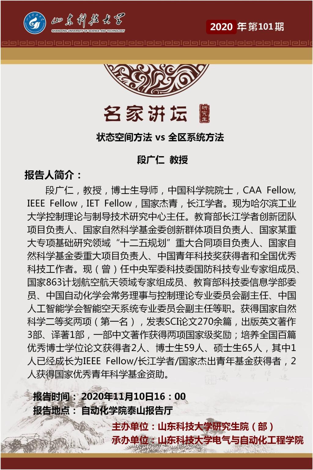 必赢776net承办第101期“名家讲坛”:段广仁教授