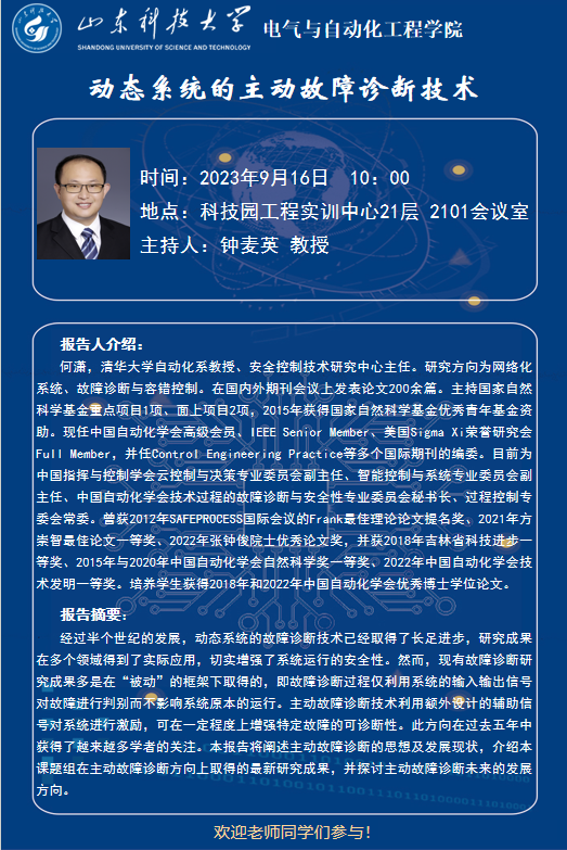 何潇学术报告:动态系统的主动故障诊断技术
