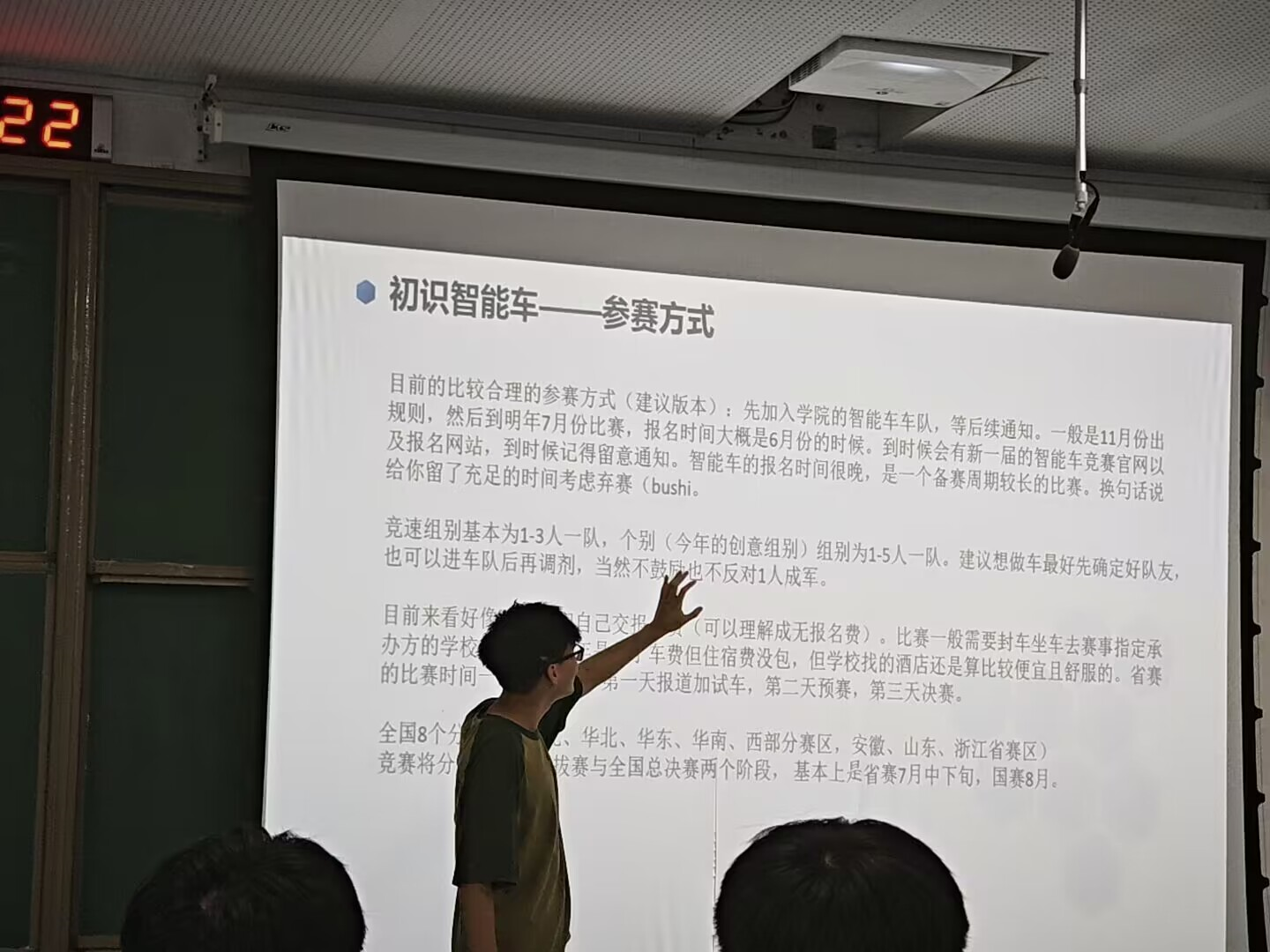 随后,社团的技术骨干们分别就智能车的设计、制作、调试和比赛策略等方面进行了详细的讲解。他们通过生动的案例和丰富的图片,展示了智能车在赛道上的精彩瞬间,以及团队成员在比赛过程中遇到的挑战和解决方案。这些真实而感人的故事,让与会师生对智能车竞赛有了更加直观和深入的了解。